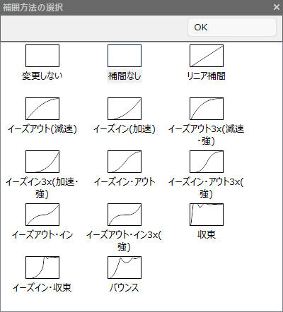 位置変化方法に「イーズアウト3x(強)」を設定しました。