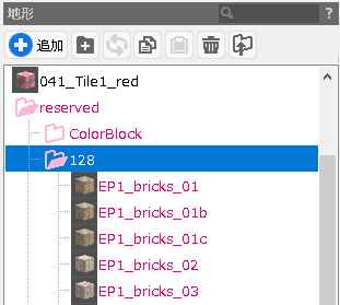 地形ブロックは、カテゴリの名前を付けたフォルダー単位で追加するのが基本です。