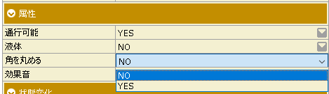 通常の通行可能な地形なので「通行可能:YES」に設定します。