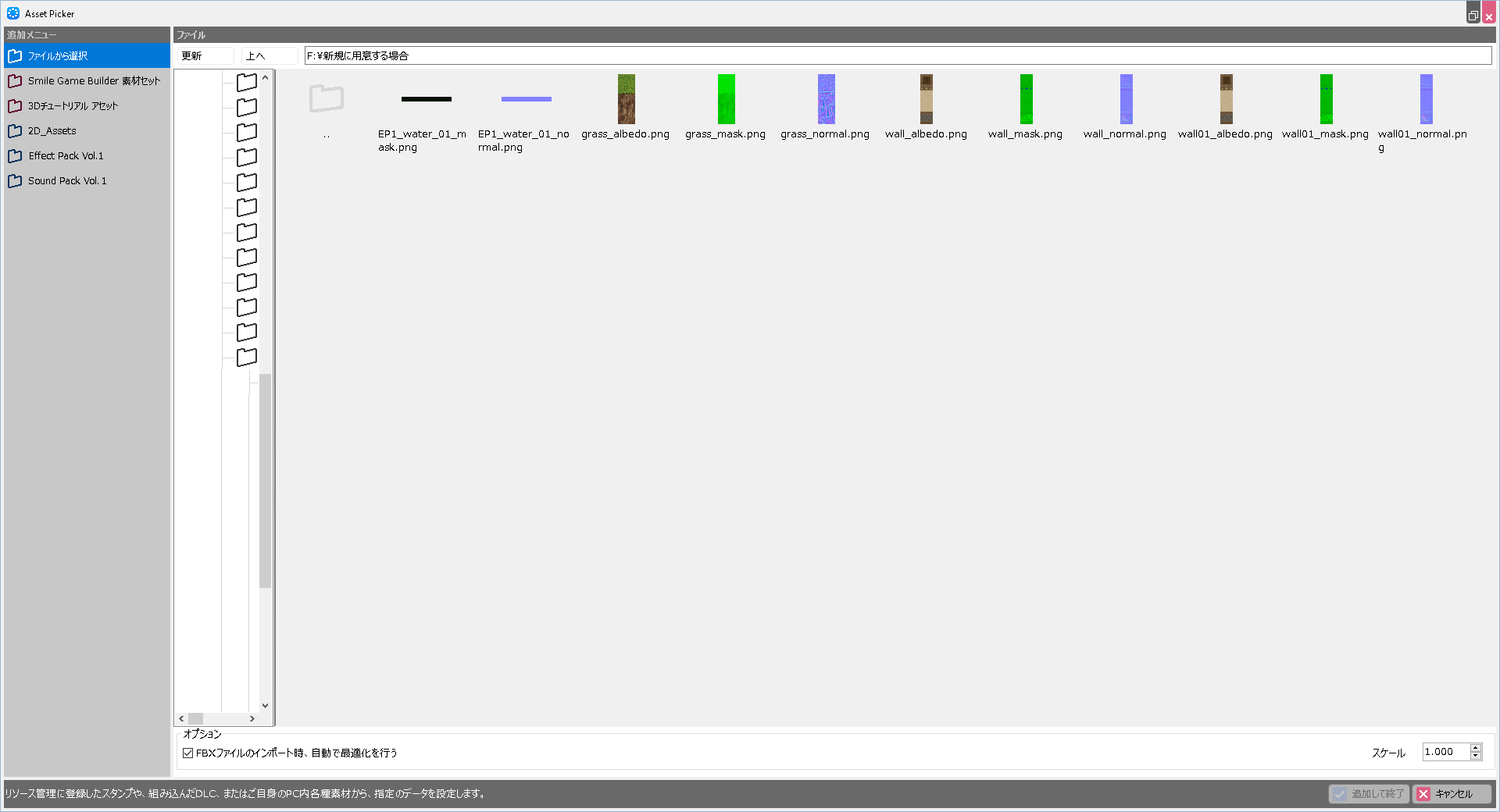 テクスチャ画像をひとつのフォルダーにまとめて追加します。