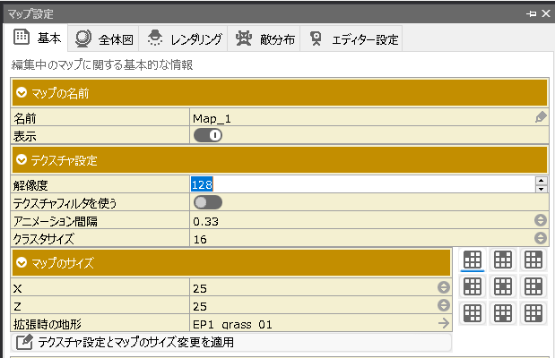 また、最大サイズは「マップ設定>基本>テクスチャ設定>解像度」で指定されているサイズで上書きされます。