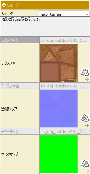 アルベドマップ、ノーマルマップ、マスクマップが設定可能です。