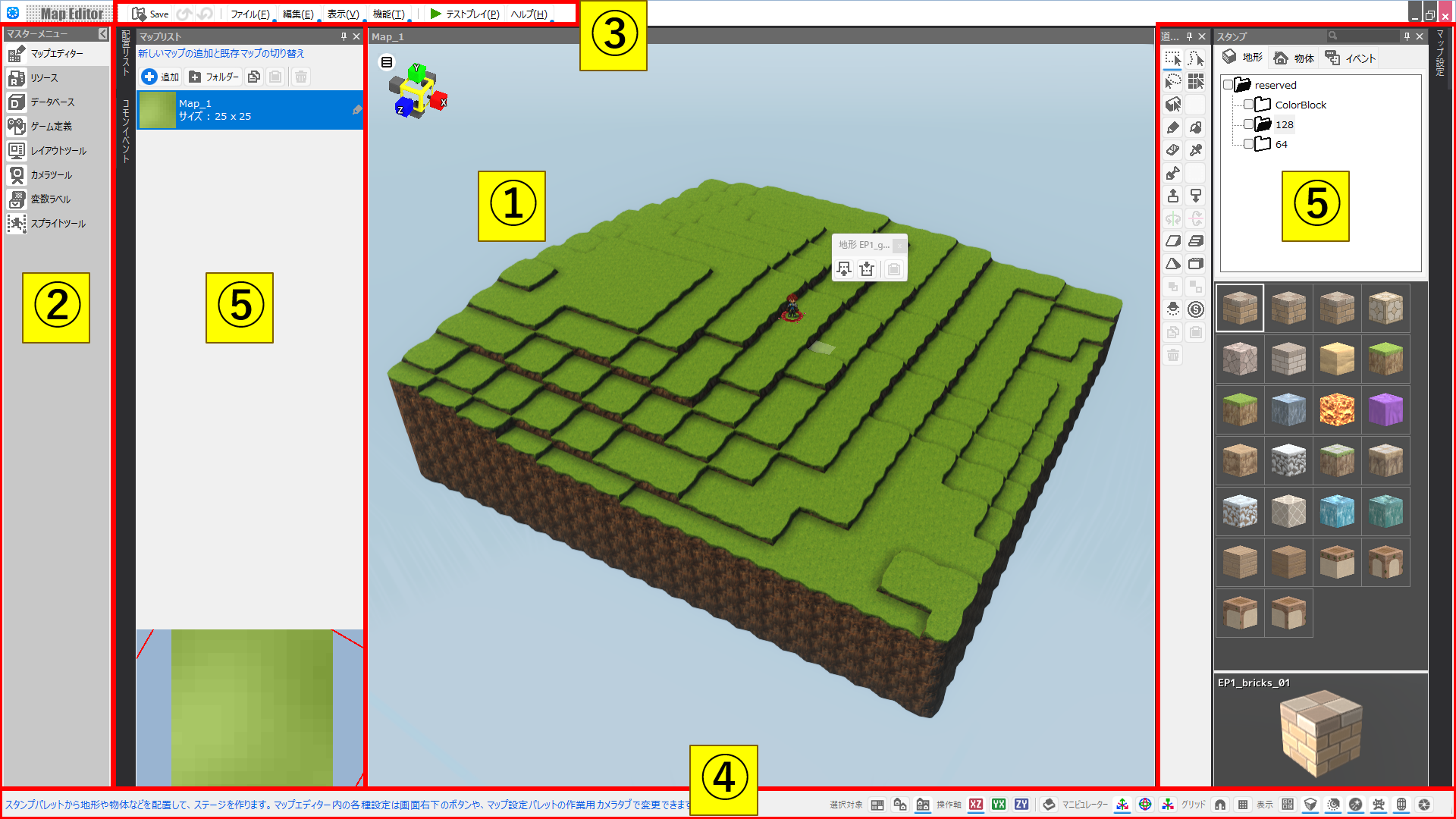 マップエディターの構成と機能は以下の通りです。