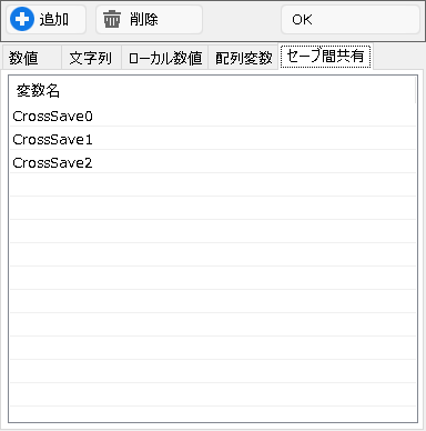 通常変数、配列変数、セーブ間共有変数を、スイッチもしくは変数として利用できます。