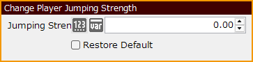 Resets the jump strength to the value set in Game Definition > Move and Operate > Jump.