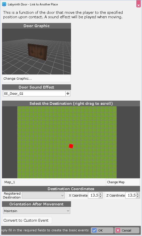 Once selected and placed on the map editor, each template is displayed and graphics, dialogues, etc. can be specified.
