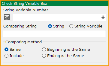 Specify the string input or string variable to be compared and the comparison condition.