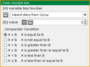 Enter a value to be compared or specify a variable box to specify the comparison condition.