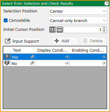 The type of Input Supports that can be used depends on the contents of the event panel.