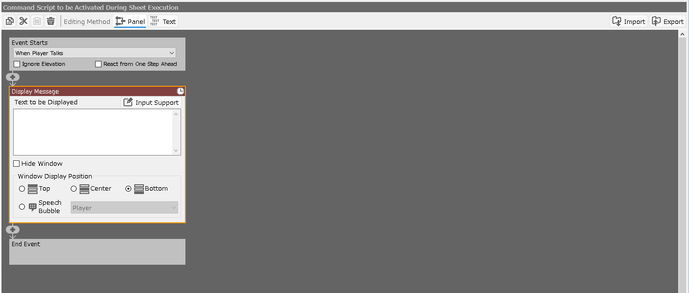 This event editor is used to create event sheets and set up the event panels that contain them.