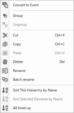 When “Sort All” is selected, the entries are grouped by type (events, objects...) on the list.