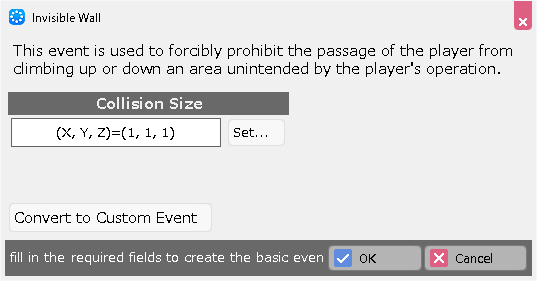 The cast stamp selected here does not have an event specified, so the event will be specified in the event editor after placement.