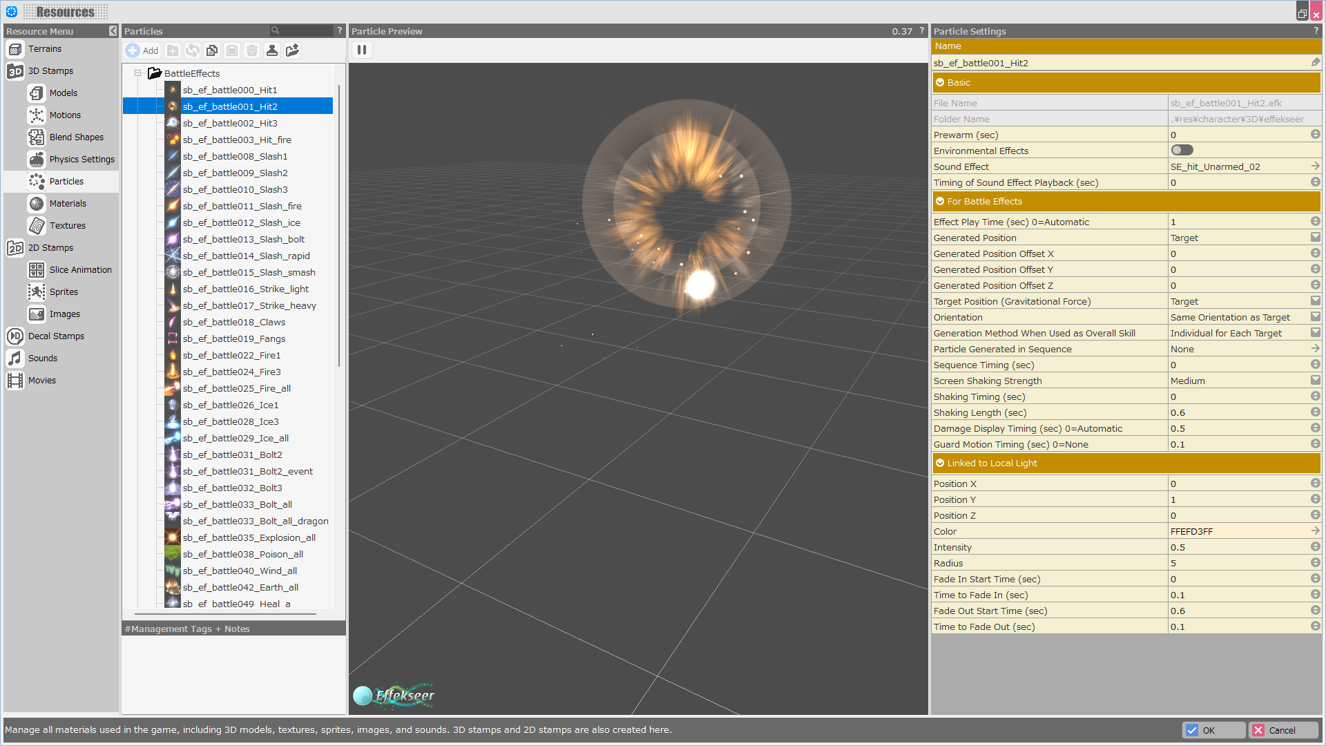 Select and add the particle effect file (.efk) you created in Effekseer.