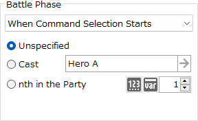 "When Battle Starts", "During the Battle", "When Battle Ends", "At the Beginning of Action", "At the End of Action", "When Command Selection Starts", "When Command is Decided", "When Command Selection is Canceled"