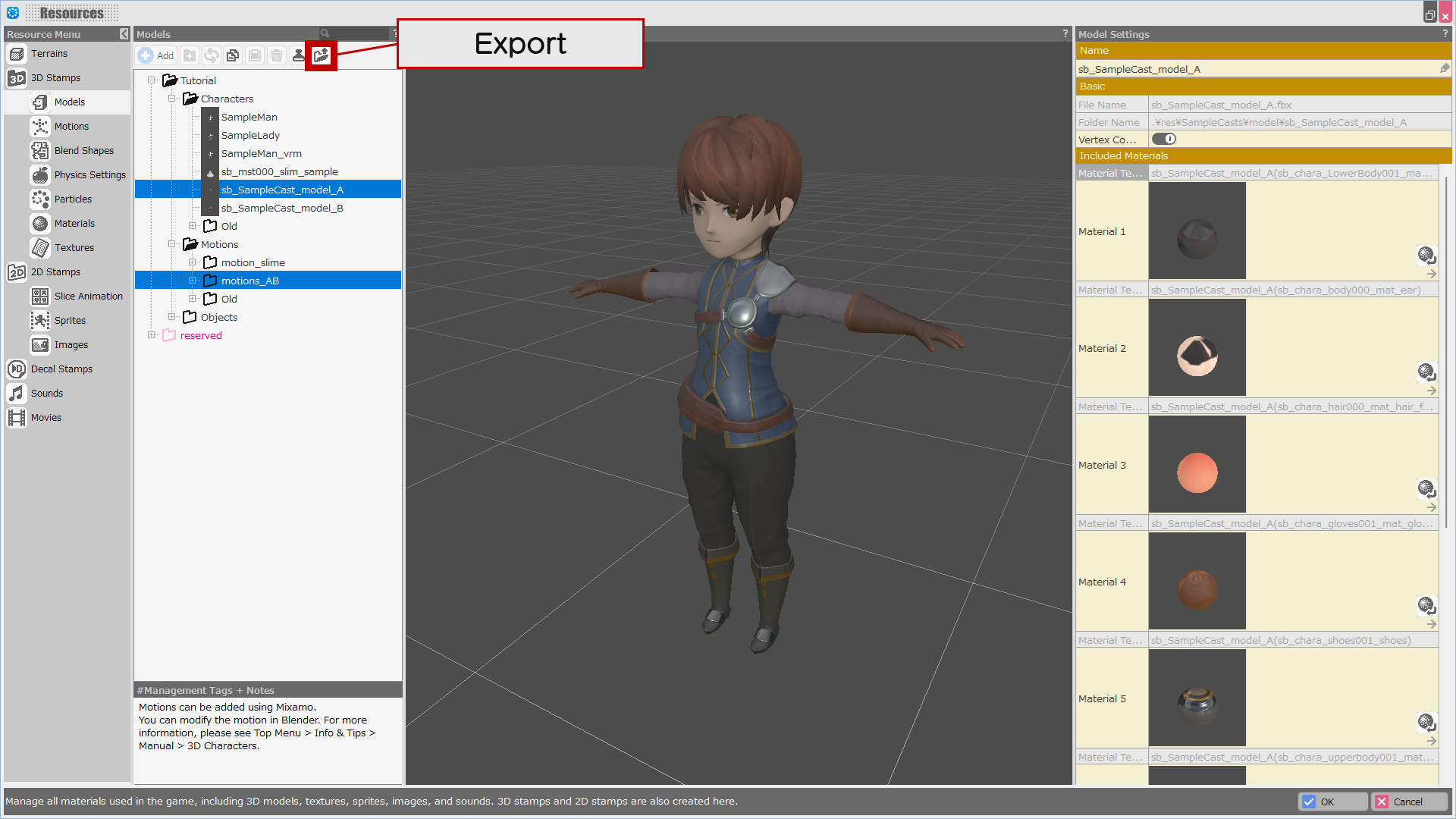 If you want to modify a model that is pre-installed in Bakin, export the model from Bakin.