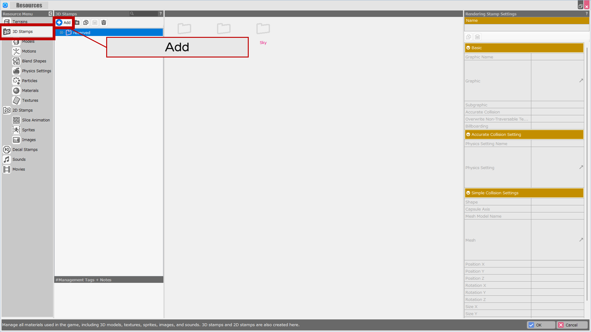 It can also be imported from Resources > Models, but the model must be "stamped" in order to place it on maps or make it usable in games.For more information on "Stamps," please visit What are 'Stamps'?.