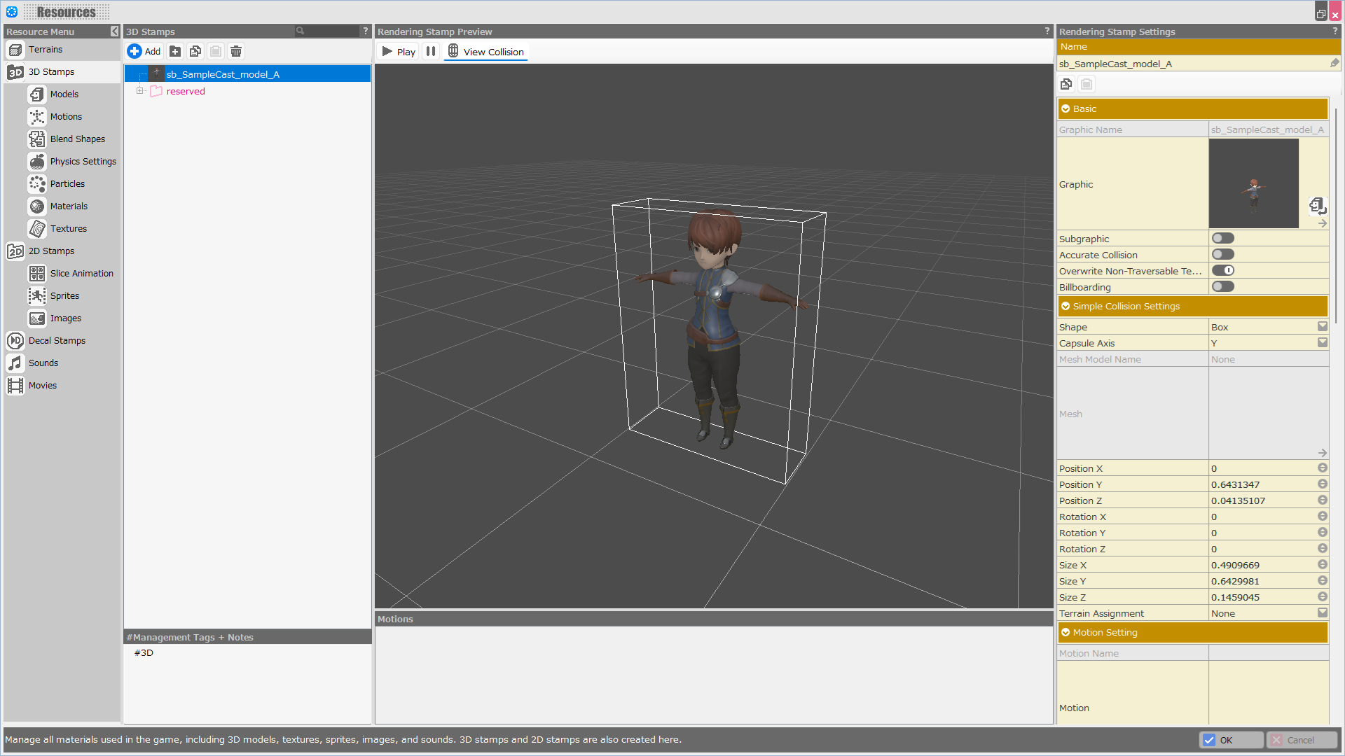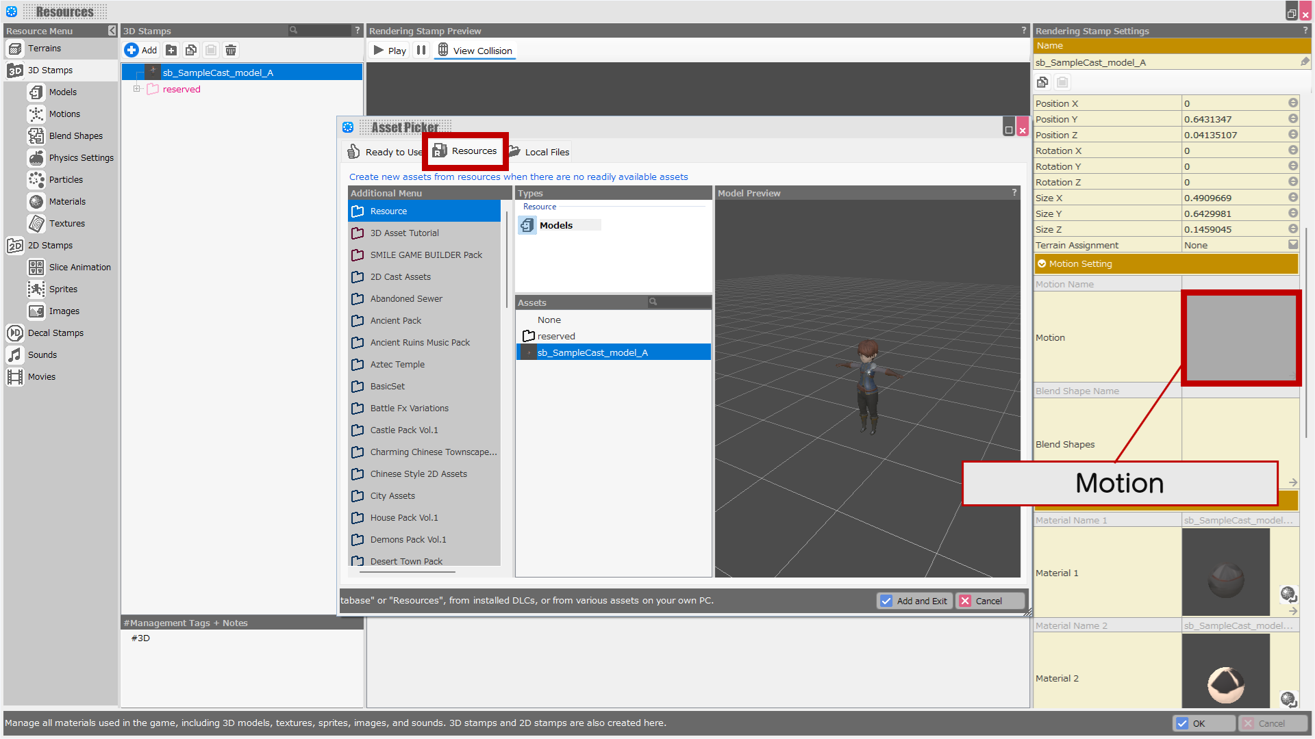 - Go back to Resources > 3D Stamps and select the stamp (created from the VRM model) to which you want to add motions.