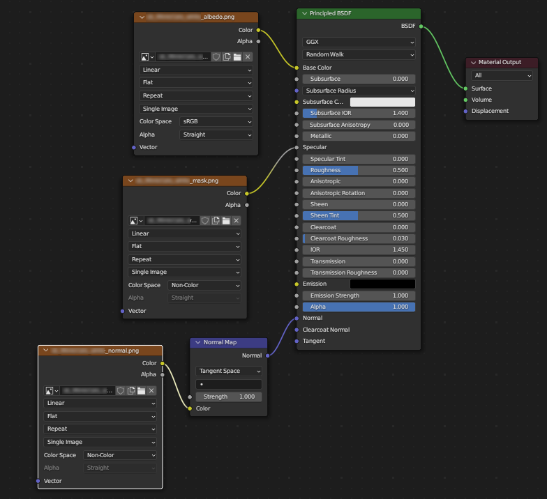 For example, if a material has textures specified for the albedo map, normal map, and mask map, as shown in the figure below, all three must match.