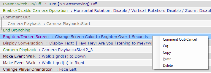 You can select "Comment Out/Cancel" by right-clicking on a panel for panel type or on a line for text type.