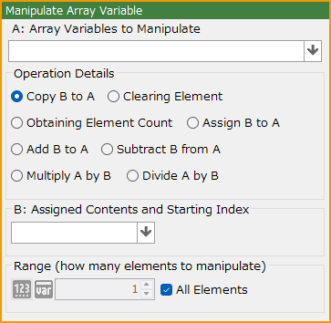 Specify the value to assign, the variable to assign the obtained value to, or the index of the array variable to start the operation.
