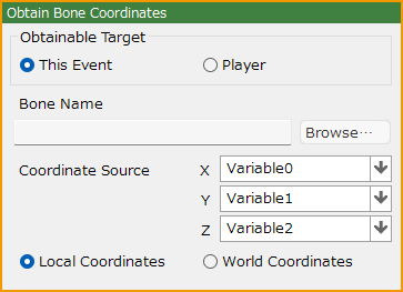 If "Local Coordinates" is specified, the coordinates are taken from the origin of the Obtainable Target's model.