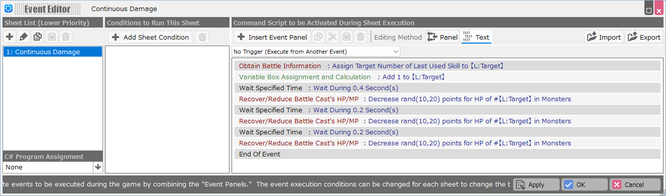 - If you wish to match the damage indication timing of the event and the skill effect, adjust the wait in the event accordingly.