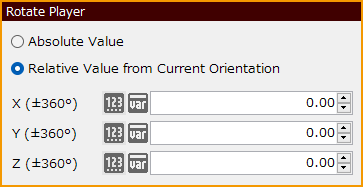 Rotate the player's orientation and angle, which can be specified for each of the XYZ axes.