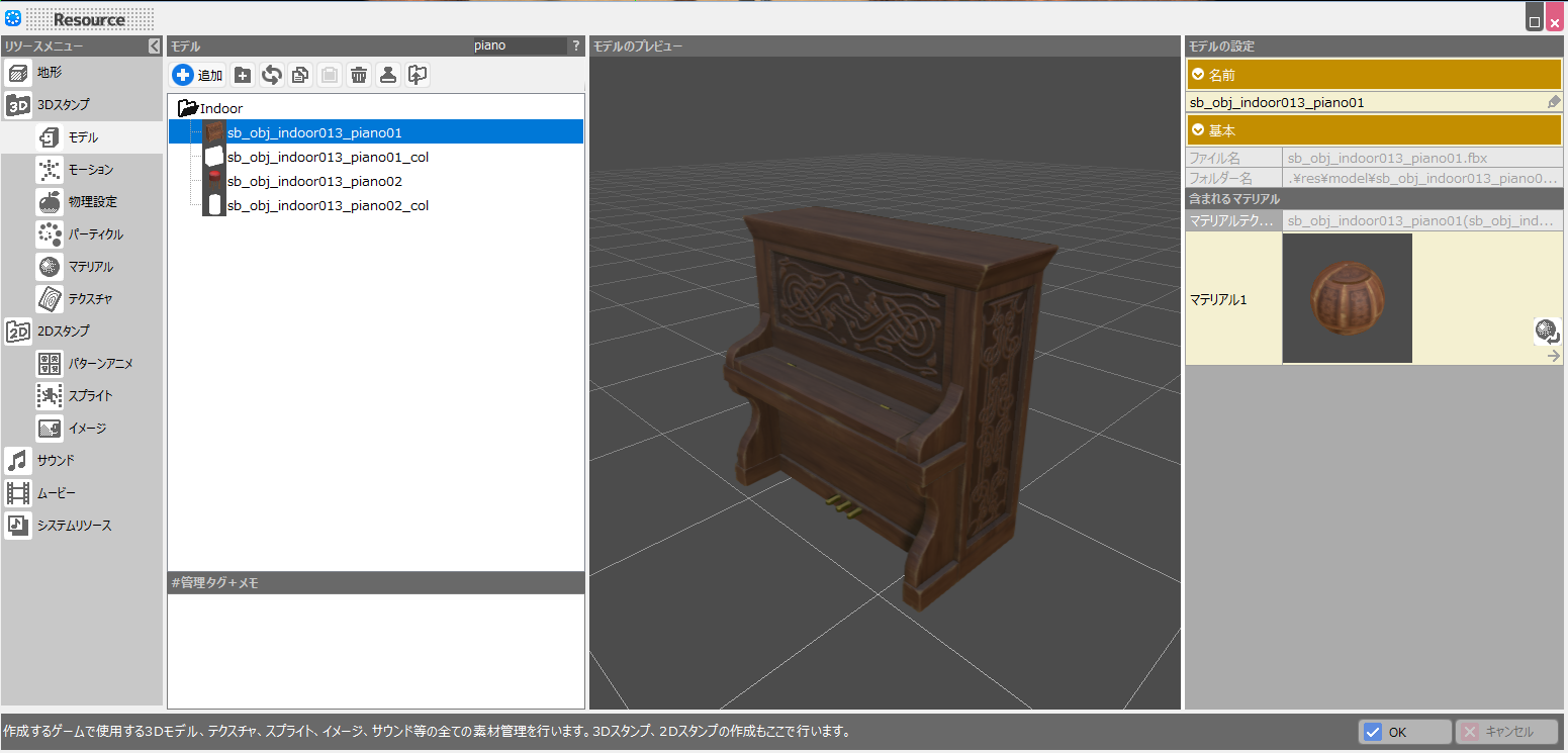 (After adding data to Bakin, updating the data in this folder will also update the corresponding data in Bakin. The added model will be added under the res folder in the game file folder.)