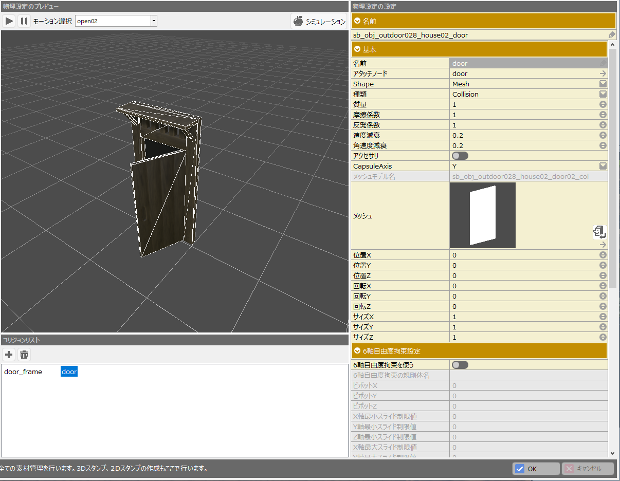 If multiple independent collisions are needed, such as a door and door frame, register multiple collisions in Physics Settings.