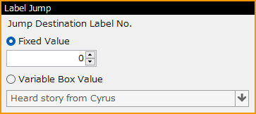 The "Label Jump" panel allows you to specify a "label" in the event to jump to.