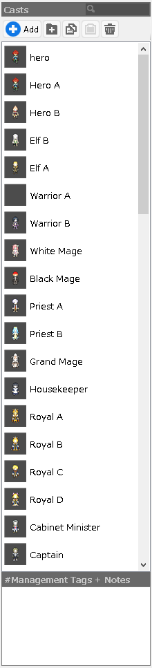 This cast is used by the main cast and other accompanying members of the party.
