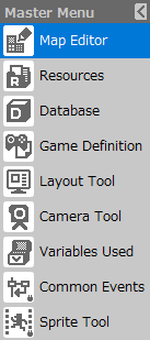 The Master Menu provides a variety of tools for creating, managing, and specifying the various elements that make up a game.