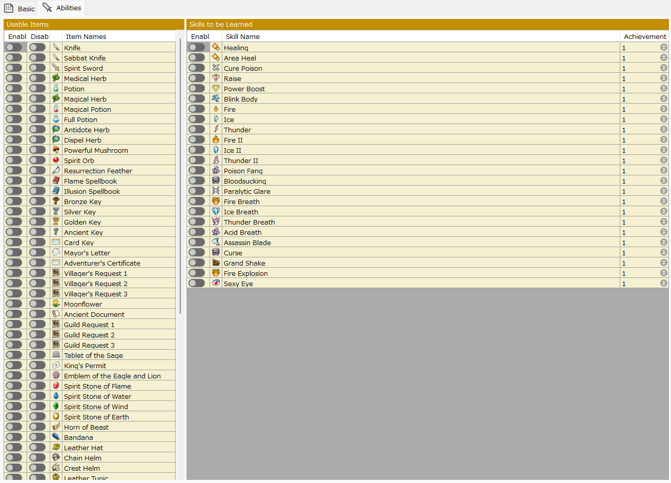 You can specify the items and skills that can be used in different classes, as well as the growth factor of their abilities if they change to that class.