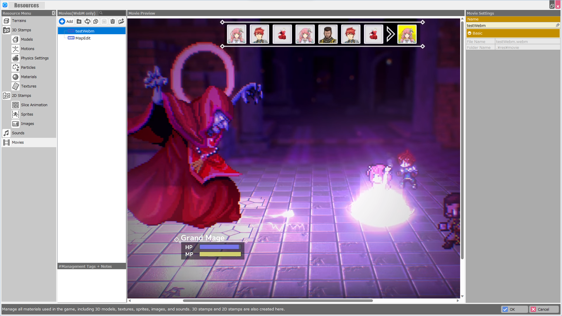 (!)When exporting a work as a published work, resources other than “resources used in the game,” such as those placed on maps or used in events, will not be included in the work.
