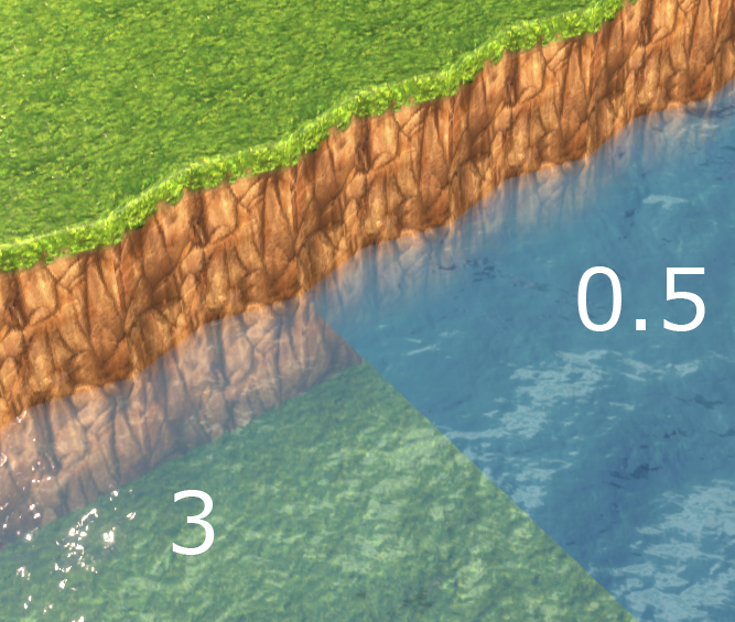 - Blend Distance: This is the distance where the transparency changes from 0 to 1 in the composition of the junction with the shore. 0 makes the touching of the ground clear.