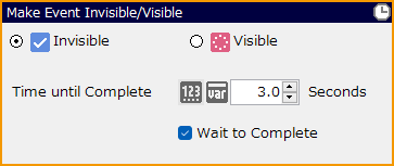 You can specify the time it takes to make invisible/visible, either as a direct value or as a variable.