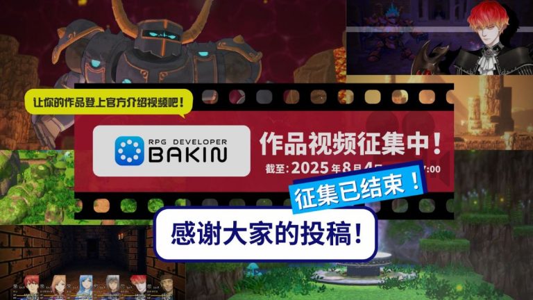 为了纪念《RPG Developer Bakin》正式发售,从今日起我们将开始征集用户们制作的游戏作品视频。